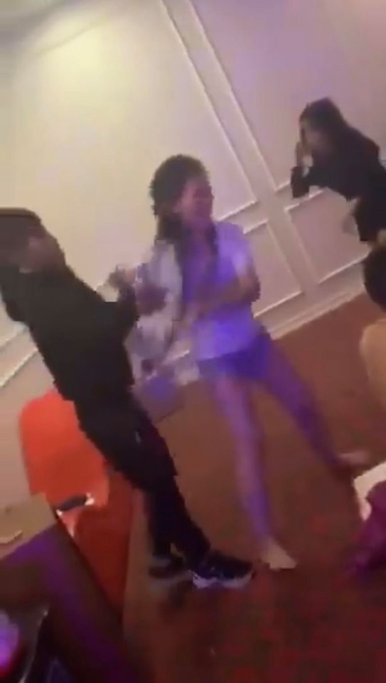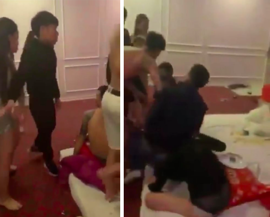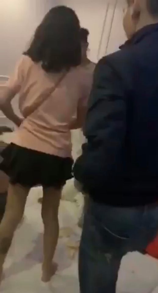 Trong khi cô vợ áo hồng, tóc ngắn liên tục quát tháo, xông vào giằng co với cô gái mặc đồ đen đang ngồi ở giường kèm theo nhiều lời chửi bới, miệt thị thì cô vợ áo trắng, tóc dài cũng liên tục lấy tay tát liên tiếp vào người chồng mình khi phát hiện anh này đang ở trong phòng chung cùng 1 người con gái khác.