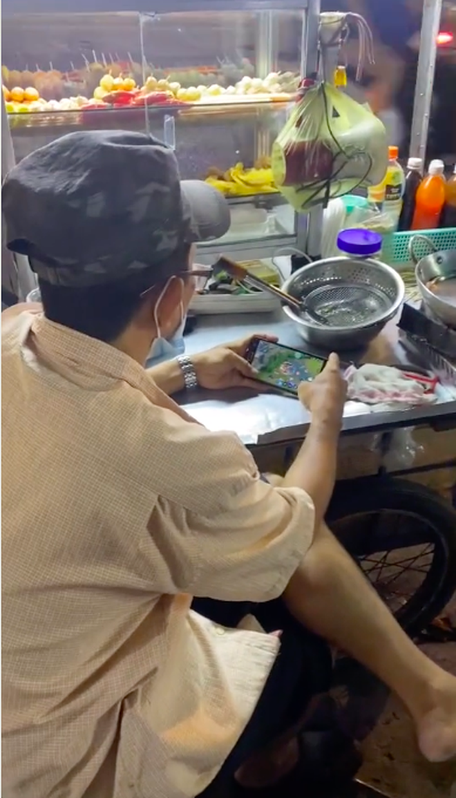 Chẳng là vì thèm cá viên chiên quá nên thanh niên này quyết định ghé vào một hàng vỉa hè trên đường Nguyễn Trãi (Quận 5) để mua. Ngỡ rằng người bán sẽ sốt sắng làm nhanh và anh sẽ có liền đồ ăn mà mang về nhà, thế nhưng chàng trai phải chờ ông chủ… đánh xong trận game thì mới chịu bán.