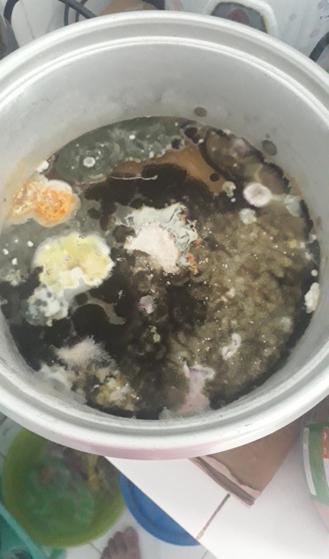 Nhìn cảnh tượng thảm họa này, nhiều người chia buồn cho gia chủ, chắc hẳn khi thấy cảnh tượng cả nồi cơm mốc meo như này chắc cũng đến nhắm mắt mà bỏ nguyên cả cái nồi, để năm mới có nồi mới và tự nhủ rằng năm sau mình sẽ khác.