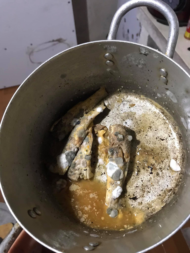 Vội về quê quên mất nồi cá kho để ngoài bếp có mấy ngày thôi, lên thì đã nổi mốc trắng. Thế nhưng, đây có lẽ là trường hợp "dễ nhìn" nhất.