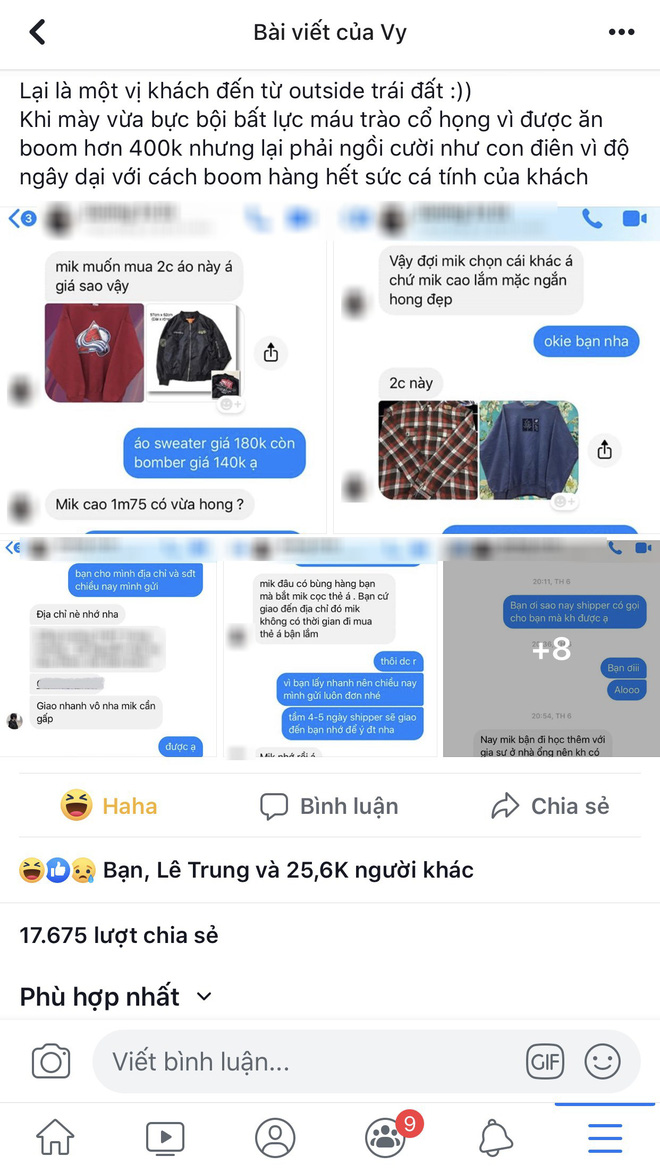 Câu chuyện bị khách boom hàng của Hà Vy có lẽ chỉ là một trong hằng hà sa số trường hợp éo le mà các shop bán hàng online từng gặp.