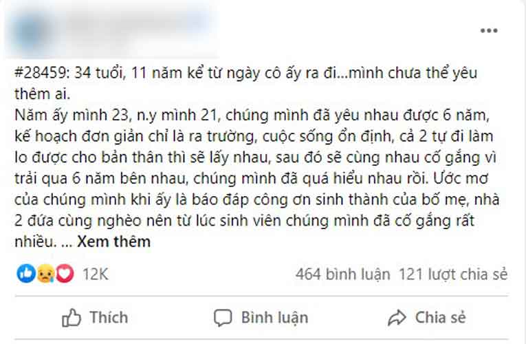 "34 tuổi, 11 năm kể từ ngày cô ấy ra đi, mình chưa thể yêu thêm ai.