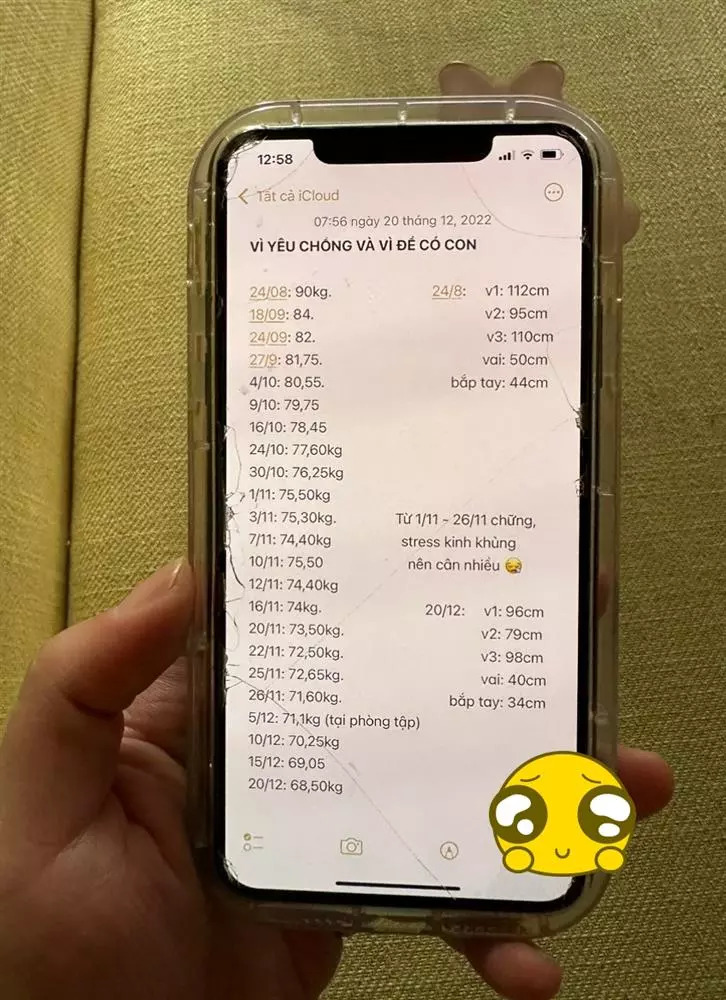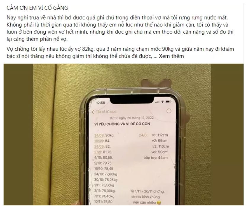 Không phải là thời gian qua tôi không thấy em nỗ lực như thế nào khi giảm cân, tôi có thấy và luôn ở bên động viên vợ hết mình, nhưng khi đọc ghi chú mà em theo dõi cân nặng và số đo thì lại càng thêm phần nể vợ.