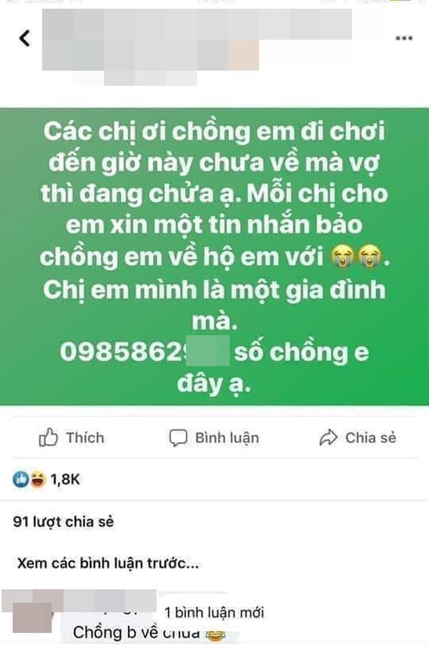 Thế nhưng, mới đây một cô vợ trẻ "cao tay" đã lên mạng nhờ 500 chị em chung tay gọi chồng về nhà sau cuộc nhậu đêm khiến nhiều người bất ngờ. Tưởng chừng như đó chỉ là một lời đùa vui, nhưng không, chỉ sau "phút mốt" đăng bài, cả loạt "cơn mưa" tin nhắn và cuộc gọi liền dội đến điện thoại của anh chồng.