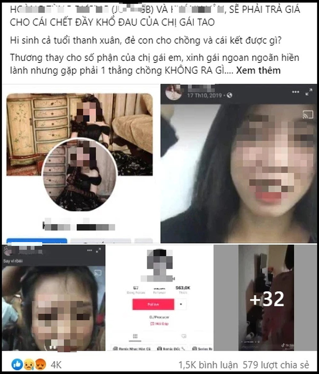 Tiếp đến là em gái xinh xắn của D. đã va phải tại bar - K.V, biết chị H. đau ốm nhưng mày công khai cặp với chồng người ta, up ảnh tình tứ hạnh phúc và thậm chí gửi cả ảnh nặc danh cho chị H.. Thật là xứng đôi vừa lứa với kẻ tệ bạc như anh D. đây. 2 anh chị mặt dày như nhau, bơ qua dư luận và cái chết của chị tao mà sống.