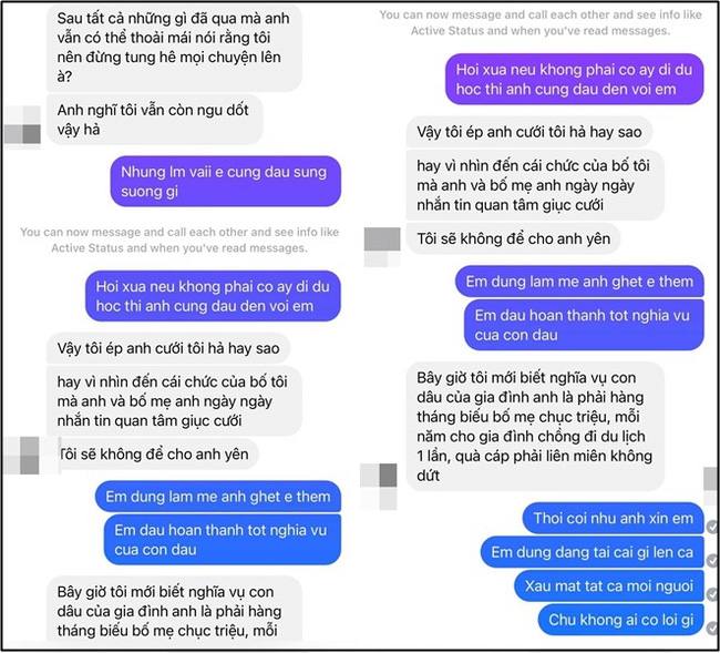 "Có nằm mơ tôi cũng không ngờ được có ngày phải lên mạng bóc phốt cả gia đình anh. Bố mẹ anh nói rằng tôi đừng làm gì để tổn hại danh tiếng của cả nhà. Nhưng thử hỏi xem, nhà anh bây giờ thì còn danh tiếng gì nữa.