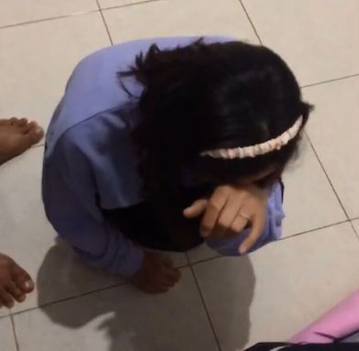 Anh chồng đang quỳ dưới đất đã sững sờ mất vài giây, sau đó còn khóc lóc xin vợ tha thứ. Trong khi đó, “tiểu tam” cũng sợ đến mức phát khóc, quỳ gối, ôm chân “chính thất” xin tha thứ. Ngạc nhiên hơn, ả ta còn “lật kèo” với nhân tình mà nói: “Tôi không kết hôn đâu. Tôi không muốn ở với cái tên cặn bã này”.