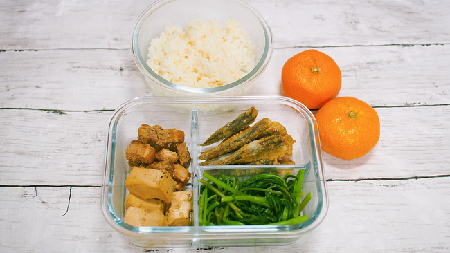 Theo như chị Quỳnh Hoa chia sẻ thì chị thường mua đồ bao gồm thịt, cá vào cuối tuần. Sau đó mang về sơ chế, chia nhỏ cho các bữa. Tối nấu cơm xong chị sẽ chuẩn bị những món mặn mất nhiều thời gian cho cơm hộp bữa trưa của chồng. Những món nhanh gọn thì chị nấu buổi sáng như rau củ... cho đảm bảo.