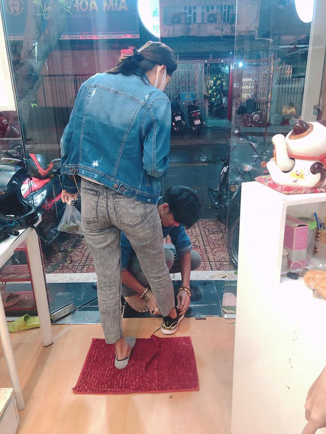 "Anh chị này là khách quen của tiệm, anh chở chị đến làm mặt và làm móng. Trong lúc đợi chị, anh ngồi bên cạnh quan sát bọn mình làm ánh mắt đầy yêu thương, miệng lúc nào cũng cười vui vẻ.