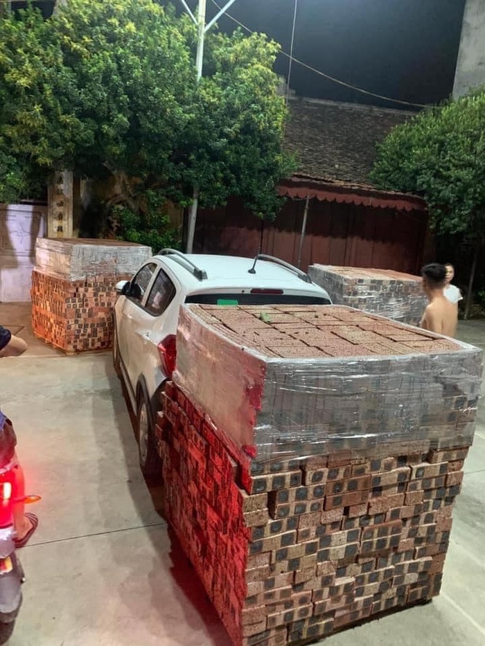 Theo đó, nhiều người dân trong làng đã hợp sức lại, quyết định khiêng chiếc ô tô ra một góc, sau đó xếp 3 chồng gạch ở 3 phía. Chủ xe khi quay lại, muốn tiến, muốn lùi gì cũng không phải chuyện dễ dàng.