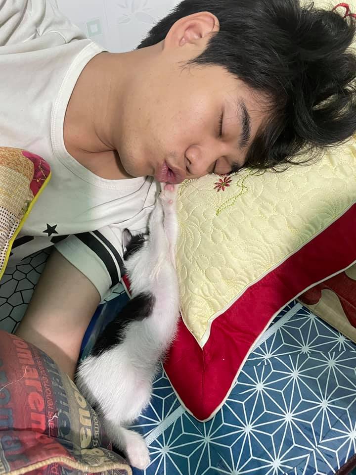 Kèm theo chia sẻ của mình, chị Lan Hương đã đăng tải hình ảnh ''bắt quả tang'' chồng đang nằm ngủ thân mật cùng "trà xanh". Và kẻ thứ 3 ở đây không ai khác chính là bé mèo mà nhà chồng của chị đã nuôi nấng từ lâu.