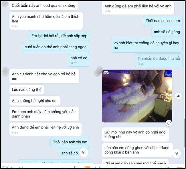 “Anh mạnh như hôm qua em thích lắm”, “Anh đừng dành hết cho vợ rồi lại bỏ bê em đấy”, “Em và vợ anh ai ‘ngon’ hơn”… Tất cả đều khiến người vợ đau đớn.