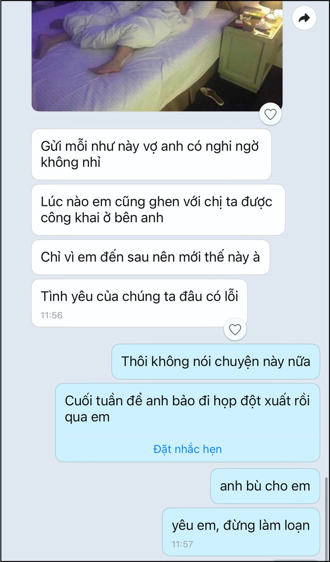 Hóa ra, chồng cô có nhân tình bên ngoài một thời gian rồi mà cô không hề hay biết. Trong đó có những đoạn hội thoại vô cùng xấu hổ.