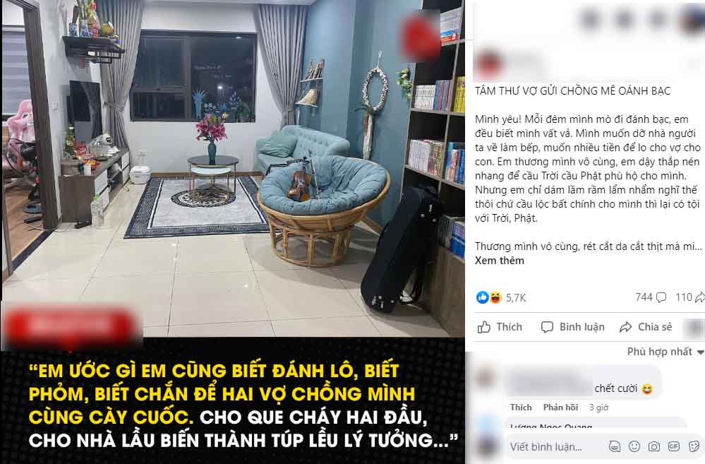 Mới đây, một chị vợ đã viết một bức tâm thư với giọng văn hài hước cho người chồng ham mê cờ bạc của mình trước khi bế con về nhà ngoại khiến cư dân mạng vô cùng xúc động.