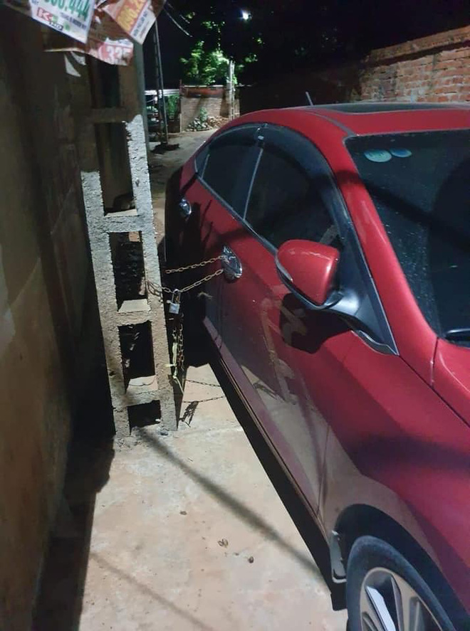 Có lẽ bởi thế mà một người nào đó đã mạnh tay dùng xích khoá tay cầm cửa ô tô vào cột đèn đường để dằn mặt, nhắc nhở.
