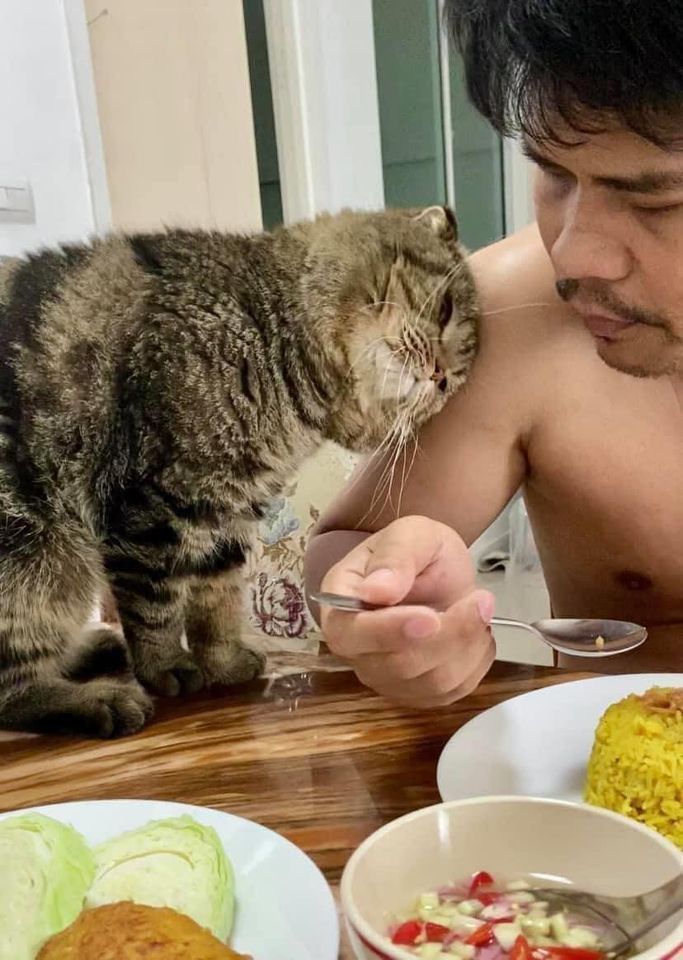 Không phải 1 lần, mà hầu như bữa ăn nào cũng vậy. Hễ thấy anh chủ ngồi vào mâm là mèo ta mon men tiến tới làm thân. Không ôm tay thì trèo lên đùi, không dụi dụi vào vai thì cũng áp má, chạm môi... Thử hỏi, cô vợ nào mà không tức khi chứng kiến chồng mình bị cướp trắng trợn thế này???