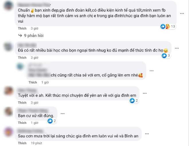 Ngay sau khi được đăng tải, bài viết của chị H. đã thu hút sự quan tâm của cộng đồng mạng với hàng nghìn lượt thích và bình luận. Ai cũng tán dương cách hành xử của chị H. và gia đình chị khi tận tay bắt quả tang em dâu ngoại tình