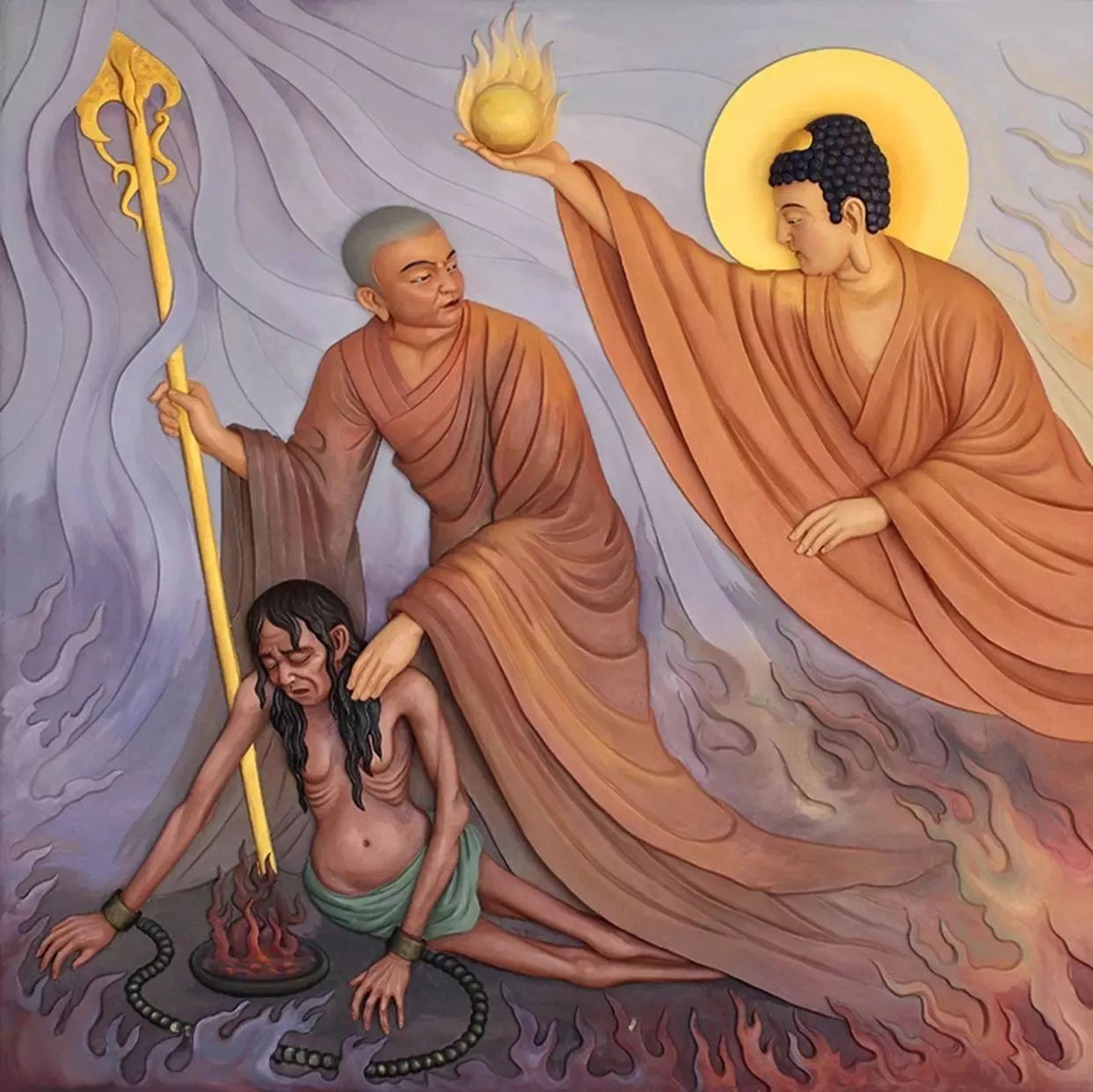Truyền thuyết kể rằng, Mục Kiền Liên đã tu luyện thành công nhiều phép thần thông. Sau khi mẹ ông là bà Thanh Đề qua đời, ông muốn xem mẹ mình đang như thế nào nên đã dùng mắt phép nhìn khắp thế gian để tìm.