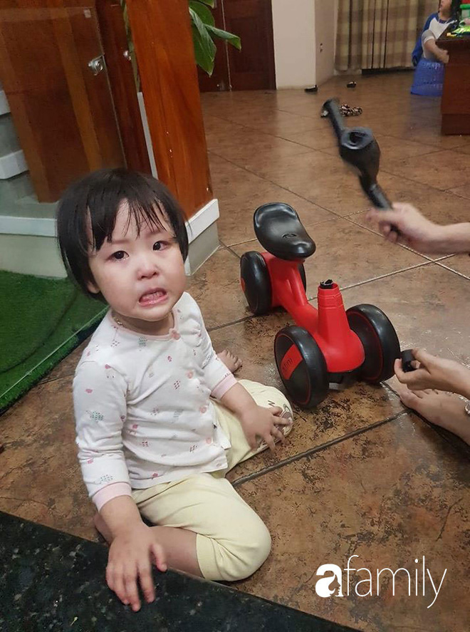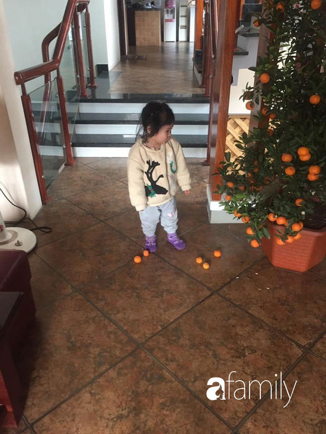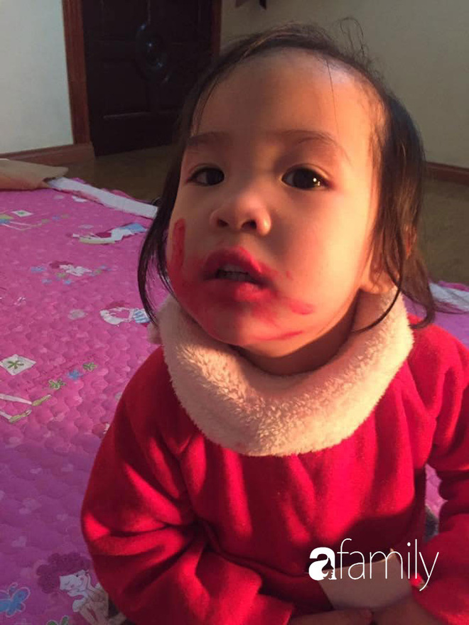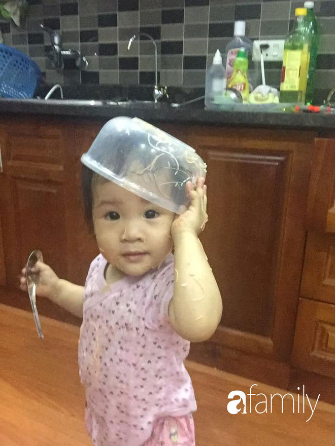 Chị Thương tiết lộ thêm những pha nhớ đời của con như không biết đi xe kiểu gì mà long cả tay lái, bố mẹ mua cây quất về trưng bày thì ra vặt sạch quả, lấy son của mẹ tô choe choét hay nghịch tới mức ngã rách cằm phải khâu 8 mũi...