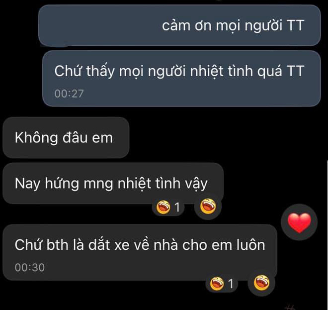 Lúc về thì tui ấm lòng lắm. Vì họ với tui chỉ là những người xa lạ thôi, nhưng họ lại tốt bụng, nhiệt tình giúp đỡ tui ngay lúc tui chẳng biết phải làm sao. Đâu đó trên đời này, vẫn có những người đáng yêu đến thế đấy!", cô gái chia sẻ.