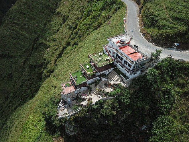 Tòa nhà được thiết kế giật cấp như bậc thang từ mặt đường đèo xuống đến sườn núi, mỗi tầng có 1 phòng ngủ. Phần mái bằng trên cùng không có phòng ở, chỉ có lan can để ngắm cảnh, với bàn ghế và ban công cho du khách nghỉ chân, uống cafe, chụp ảnh sống ảo.
