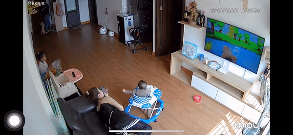 Theo đoạn clip ghi lại, người mẹ ở nhà chơi cùng 2 con nhỏ, cùng lúc người bố ở bên ngoài mở cửa trở về nhà.