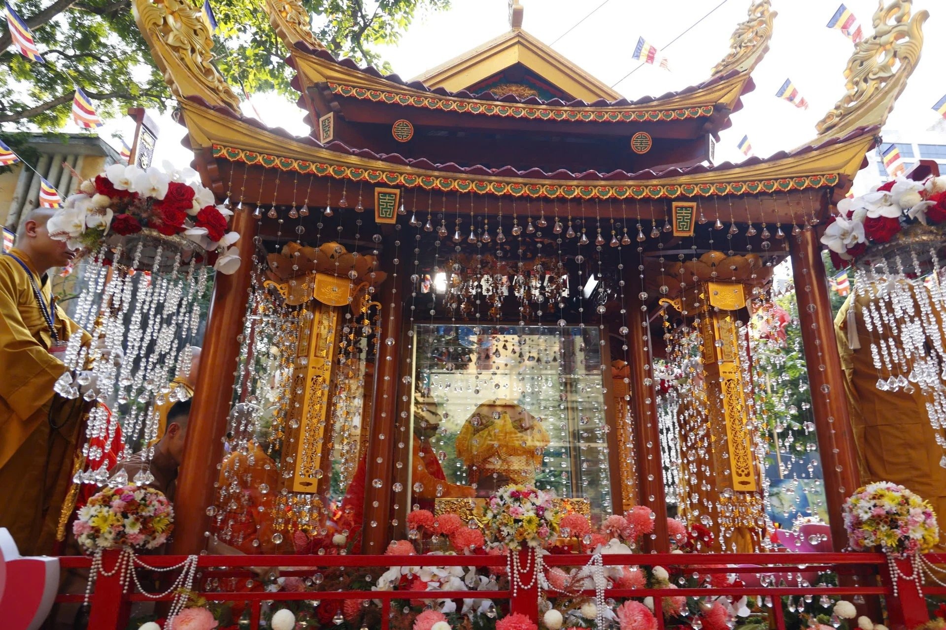Xá lợi Đức Phật Thích Ca Mâu Ni được rước trên kiệu, đi qua tiếng kinh cầu thành kính của hàng nghìn người dân và phật tử. Lễ rước diễn ra chậm rãi. Người dân chắp tay, niệm Phật, mong được chiêm ngưỡng và cầu nguyện dưới xá lợi linh thiêng.