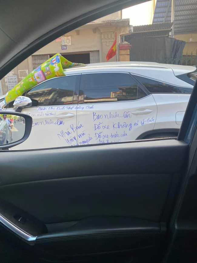 Cụ thể, theo hình ảnh thân xe Lexus tiền tỉ được người đi đường chụp lại cho thấy, chiếc ô tô màu trắng này bị viết chi chít những dòng chữ bằng bút mực xanh với nội dung như: "Nhà bán hàng mà đỗ ngay cửa. Bao nhiêu lần đỗ xe không có ý thức. Đỗ xe trước cửa ra vào...".