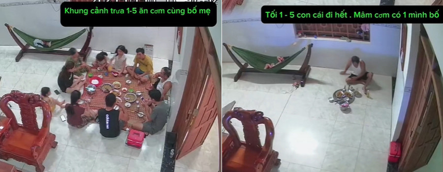 Đoạn video trích từ camera gia đình ghi lại sự đối lập giữa hình ảnh cả nhà sum vầy ăn bữa trưa và hình ảnh người cha lẻ loi bên mâm cơm tối thu hút sự quan tâm đặc biệt của dân mạng những ngày qua.
