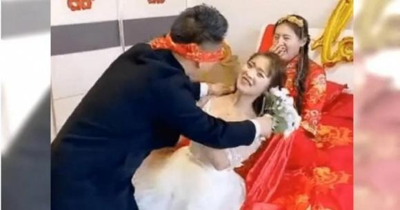 Qua đoạn video được tung lên mạng, có thể thấy trong ngày cưới, nhà gái đã đưa ra thử thách để chú rể đã bịt mắt chọn cô dâu trong số các phù dâu xung quanh và đoán xem ai là vợ của mình.