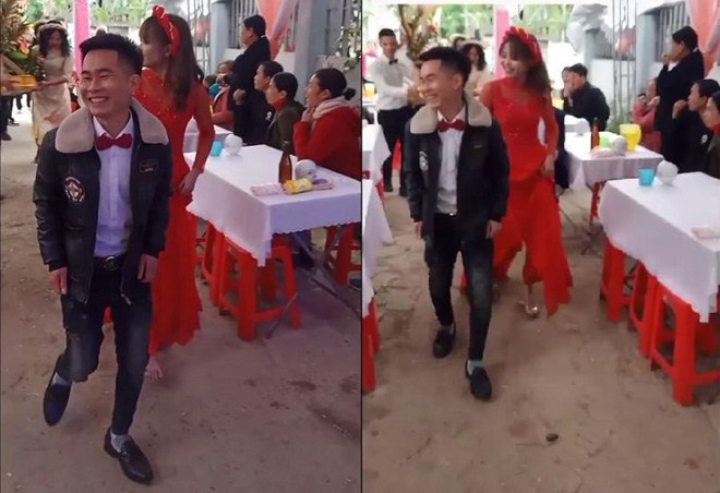 Mới đây (20/1), mạng xã hội lan truyền đoạn clip ngắn ghi lại cảnh lễ ăn hỏi của một cặp đôi ở Hà Tĩnh gây xôn xao. Theo đó, chú rể ăn mặc theo phong cách rất… đặc biệt: áo trắng thắt nơ đỏ nhưng lại vận áo khoác da đen ở ngoài; quần jean, đeo khuyên tai. Còn cô dâu mặc áo dài đỏ, đội mấn và được trang điểm vô cùng xinh đẹp. Cả hai cùng rạng rỡ, tươi cười trong ngày trọng đại của cuộc đời.