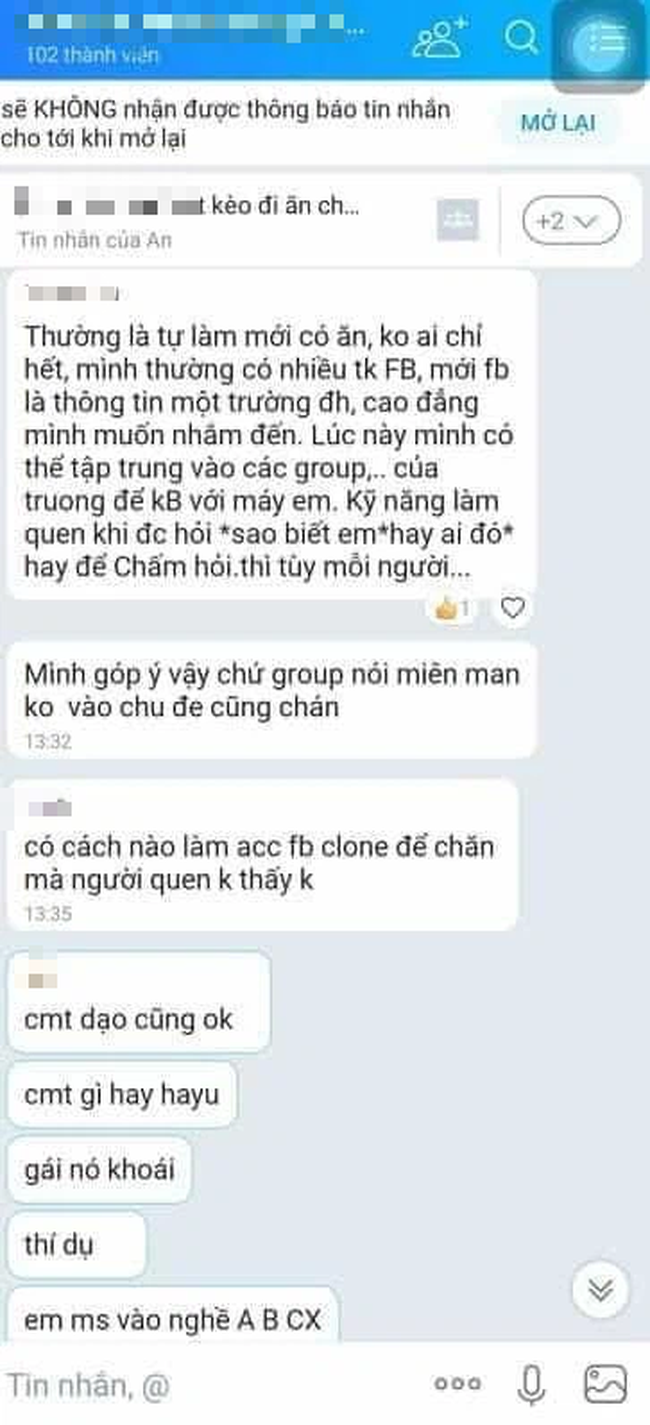 P.L - 1 người có vẻ "lão làng" chia sẻ bí quyết: "Thường là tự làm mới có ăn, không ai chỉ hết. Mình thường có nhiều tài khoản facebook, mỗi face là 1 thông tin trường Đại học, cao đẳng mình muốn nhắm đến. Lúc này mình có thể tập trung vào các group của trường để kết bạn với mấy em. Kỹ năng làm quen khi được hỏi: "Sao biết em", "Ai đó?"... hay chấm hỏi thì tùy môi người".