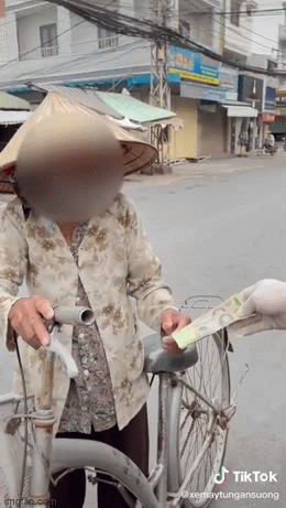 Tuy nhiên, bạn nam đã biếu bà 200 ngàn vì thấy bà tội nghiệp. Nhận tấm lòng tốt của các bạn, bà cụ không quên cảm ơn và kể về hoàn cảnh của mình, "Có tiền mua gạo với mai đi chích té con ạ. Ngoại lấn té ngoại lòi chỗ này mà không có tiền đi chích. Nhờ tiền của con, ngoại sống rồi, đi mua gạo với đi chích. Đi làm mướn, có ai nuôi đâu. 4 bà con gái 5 trai mà có ai nuôi đâu. Khổ lắm. Cảm ơn con nghe".