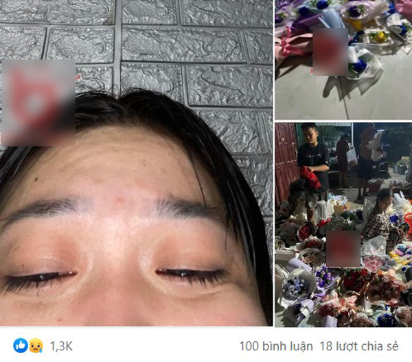 Theo hình ảnh và nội dung bài đăng, toàn bộ hoa được bày bán đều bị dính mắm tôm, cô gái phải nhờ thêm 2-3 người thân cùng nhau dọn dẹp đến khuya mới xong.