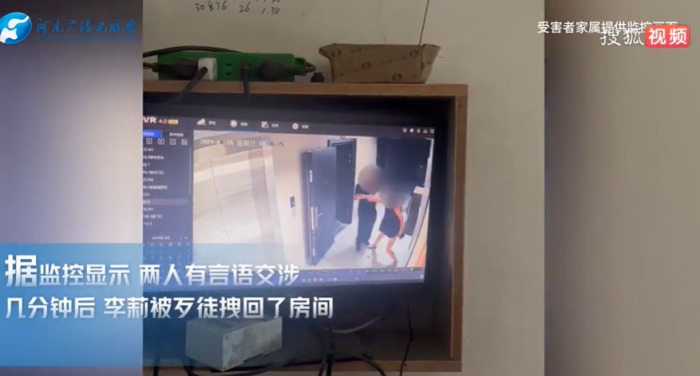 Khoảng vài tiếng sau, Lý Lệ phát hiện con trên phòng đã lâu không xuống nhà nên đi lên kiểm tra. Đoạn camera giám sát tại hành lang chung cư cho thấy, ngay khi Lý Lệ mở cửa phòng, một tên côn đồ cầm dao lao ra và ép cô vào cửa thang máy. Sau đó, Lý Lệ lời qua tiếng lại và bị tên côn đồ kia kéo về phòng.