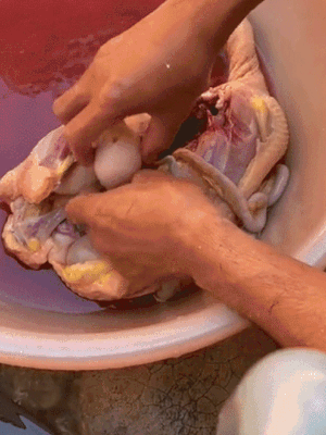 Mới đây, trên MXH xuất hiện một đoạn clip mổ gà khiến người ta phải chú ý. Thật sự thì đây cũng là một đoạn clip bình thường như mọi clip làm gà khác, nhưng có điều đặc biệt ở đây chính là, khi mổ xong thì người ta lấy ra được 5 6 quả trứng từ trong bụng gà. Không phải là trứng gà non như chúng ta vẫn quen thuộc mà đây là những quả trứng đầy đủ vỏ cứng và to.