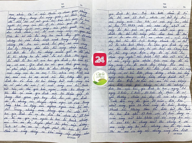 Bức thư viết kín 4 mặt giấy, kết thúc bằng lời "cầu xin" của Ngọc. Những dòng chữ ngay ngắn, chứa đựng những tâm sự, nỗi niềm ăn năn và cả tình yêu thương.