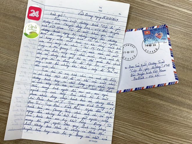 Phía nhận không phải người thân hay bạn bè, bức phong thư được đề bên ngoài với địa chỉ "đặc biệt": Ban sản xuất chương tình "Cặp lá yêu thương" - VTV1, Đài truyền hình Việt Nam.