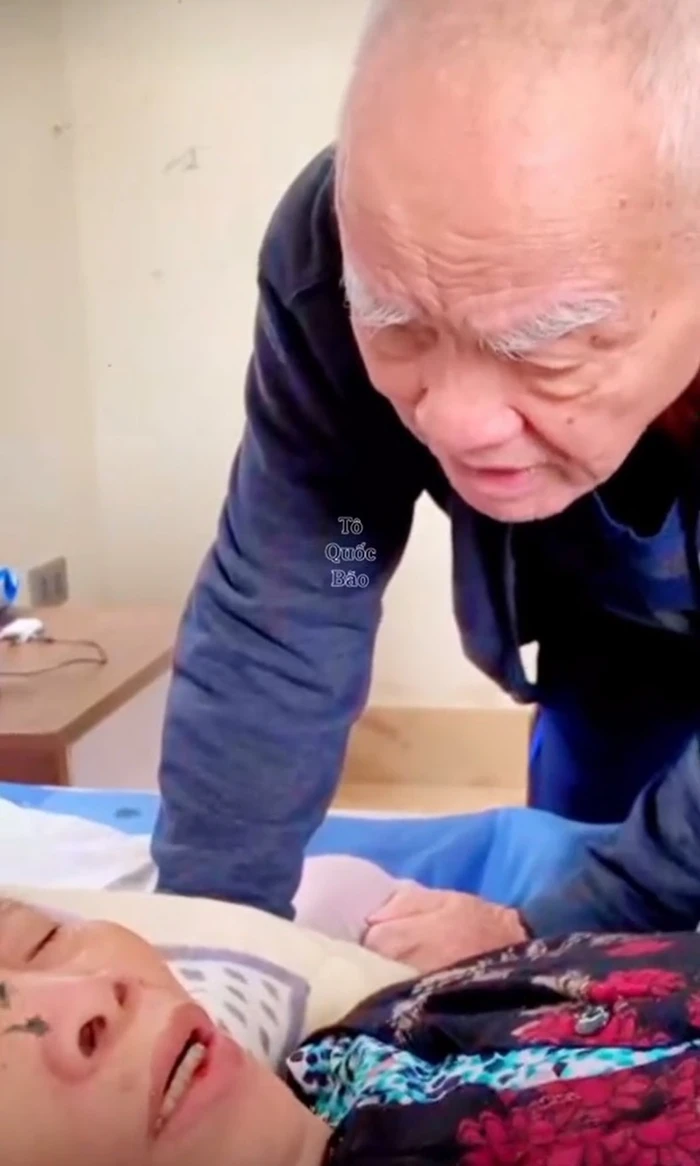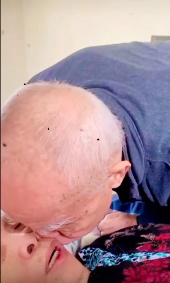 Có thể thấy trong đoạn clip là hình ảnh một cụ ông râu tóc đã bạc trắng, bước đi chầm chậm, đến bên vợ mình đang nằm trên giường. Vì bị bệnh, nên cụ bà nằm mê man, không còn tỉnh táo.