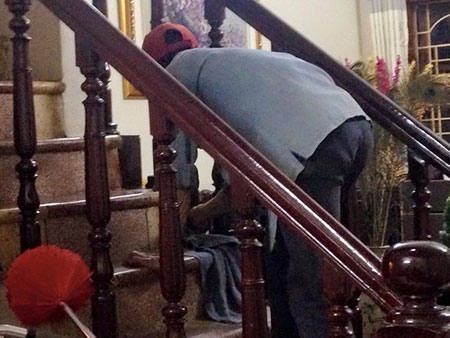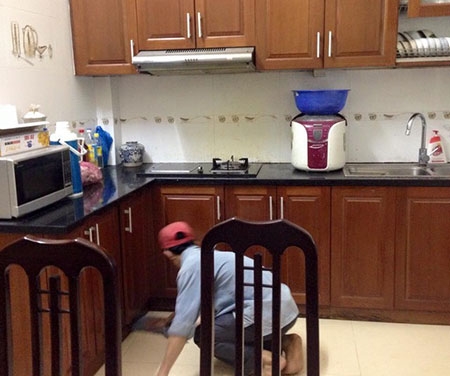 "- Sao anh lang thang gõ cửa từng nhà vậy? : Tôi xin lau dọn nhà