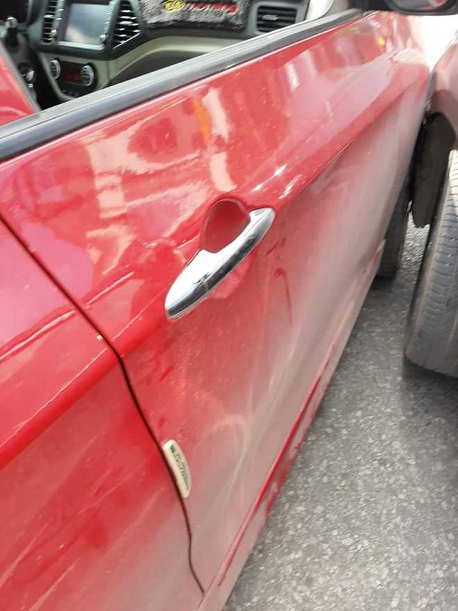 Em dừng xe xuống xem sao. Sang gõ cửa xe kia,, thấy họ hạ kính xuống thì lại tiếp tục giật mình. Trong xe là một bà mẹ, một tay ôm con, một tay cầm vô lăng. Em bảo xuống giải quyết thì chị ấy tỉnh bơ nói: "Em xin lỗi, anh thông cảm em con nhỏ"", người đàn ông kể lại.