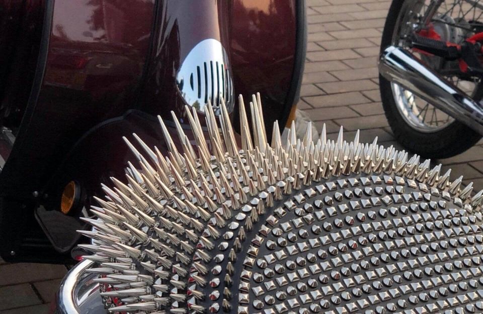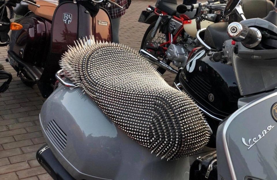 Quả thật, nhìn chiếc yên xe máy này nhiều người đã cảm thấy đau mông. Bởi nó được gắn chi chít những chiếc đinh tán nhọn hoắt lên bề mặt, nhìn chẳng khác nào lông nhím. Phần đuôi của yên xe còn gắn những chiếc đinh dài phải đến 4-5 phân.