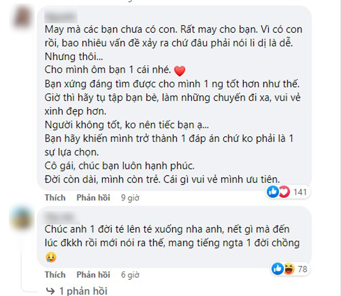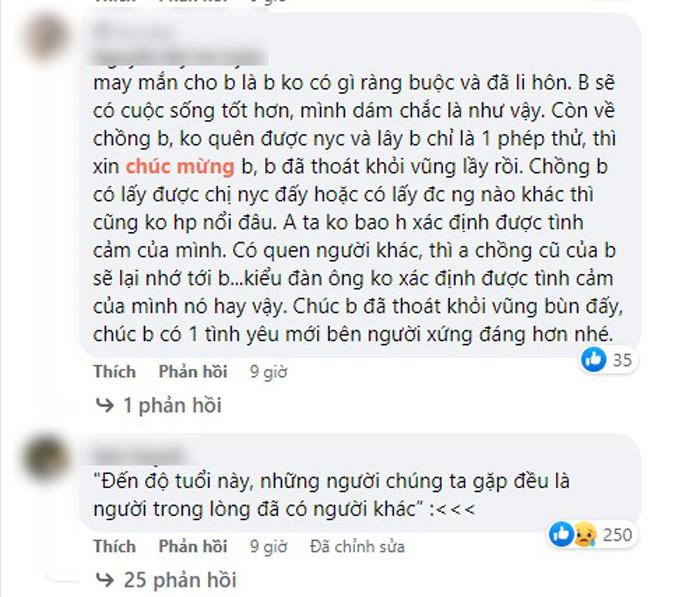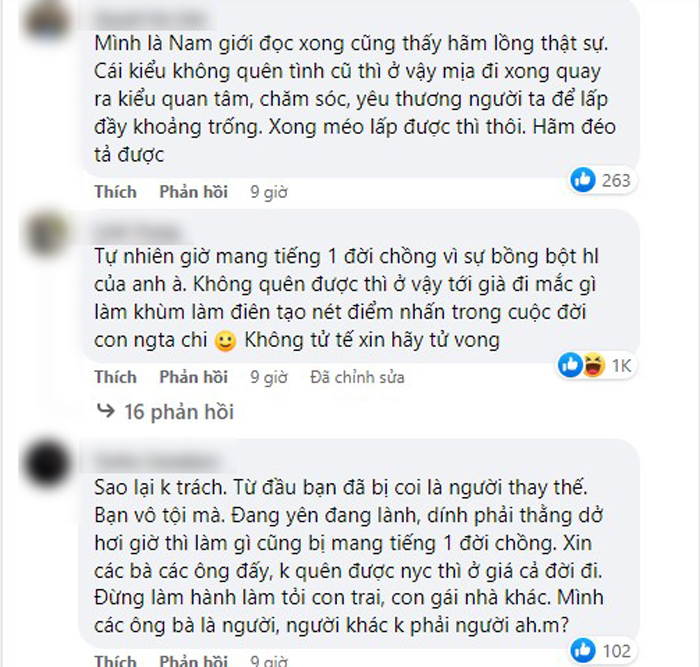 Mình ban đầu cũng trách anh, nhưng rồi mình nghĩ lại trách cũng khó, vì anh cũng đã cố gắng, anh không liên lạc, nói chuyện gì với chị người yêu cũ nhưng trong lòng anh hình bóng chị ấy vẫn còn quá lớn, bản thân mình không thể thay đổi được gì. Chúng mình quyết định làm đơn li hôn, anh ký nhưng sẽ li hôn 1 cách thầm lặng, chỉ những người trong cuộc biết.