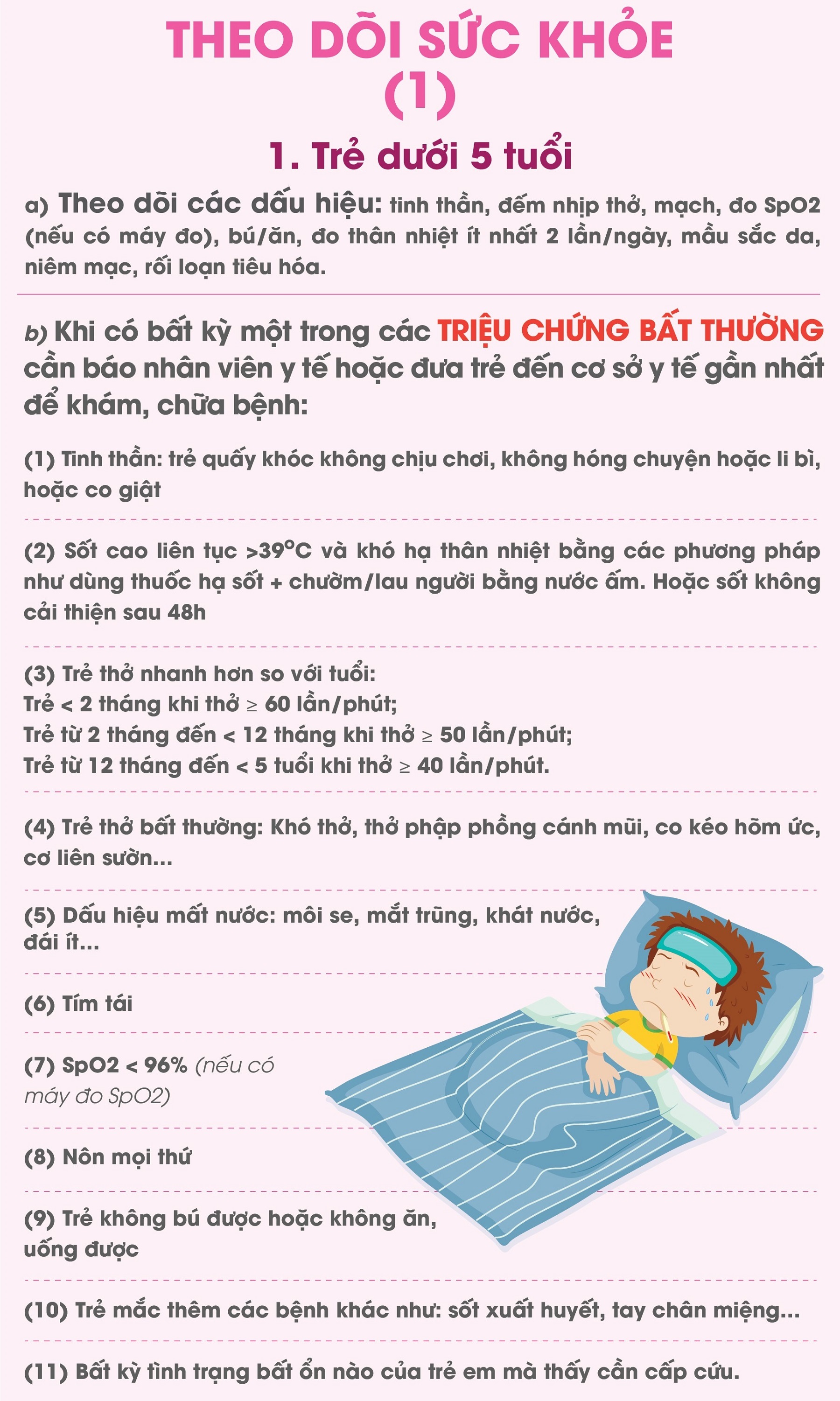Hướng dẫn theo dõi sức khỏe trẻ dưới 5 tuổi, các triệu chứng bất thường cần liên hệ nhân viên y tế