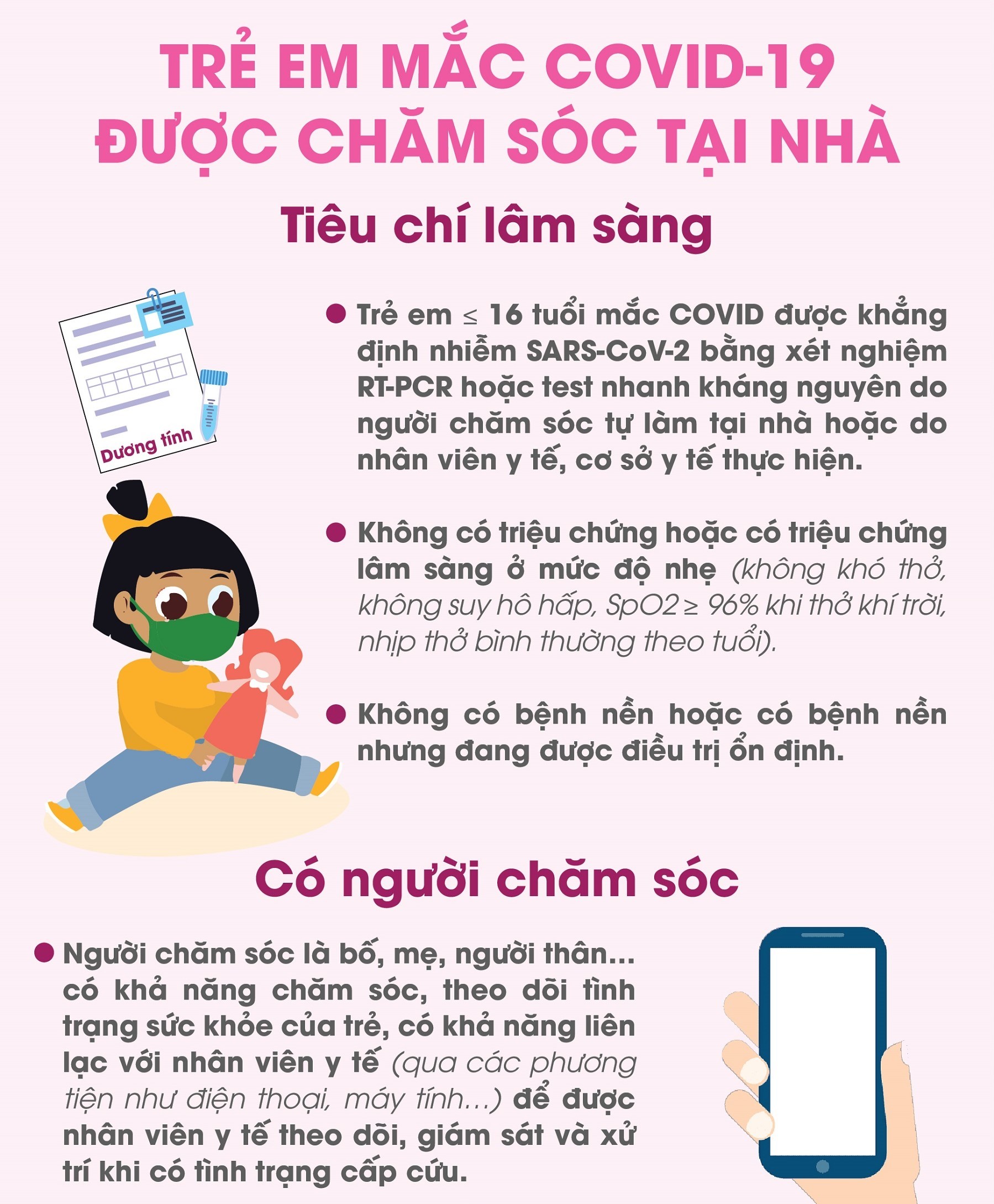 Tiêu chí lâm sàng để trẻ được chăm sóc, cách ly tại nhà