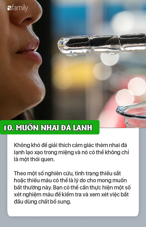 Tự dưng thèm nhai đá lạnh lộc cộc, luôn khát nước, hay quên, mệt mỏi, giảm ham muốn tình dục và một số biểu hiện khác hoàn toàn có thể là dấu hiệu trên cơ thể tiết lộ bạn đang không khỏe.
