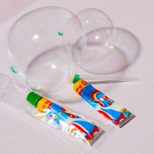 Chỉ cần một tuýp keo thổi bong bóng kèm ống hút, lấy ống hút chấm vào dung dịch keo và dùng miệng thổi là sẽ có ngay những trái bóng tròn bay lơ lửng. Với trẻ con, vẻ đẹp của những trái bong bóng vô cùng bắt mắt. Chỉ cần thổi một hơi, những chấm dung dịch được thổi phồng thành từng trái bóng bay lơ lửng trên không trung. Trái bóng trong suốt nhưng vẫn mang ánh màu lung linh như thật như mơ khiến trẻ con càng thêm tò mò, thích thú.