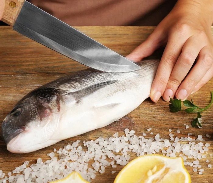 Phần bên ngoài da cá có một lớp màng nhầy bao phủ nên có chứa một lượng lớn vi khuẩn và các chất bẩn. Vì vậy, nhất định phải dùng dao cạo sạch lớp dịch nhầy này để loại bỏ chất bẩn bên ngoài con cá.