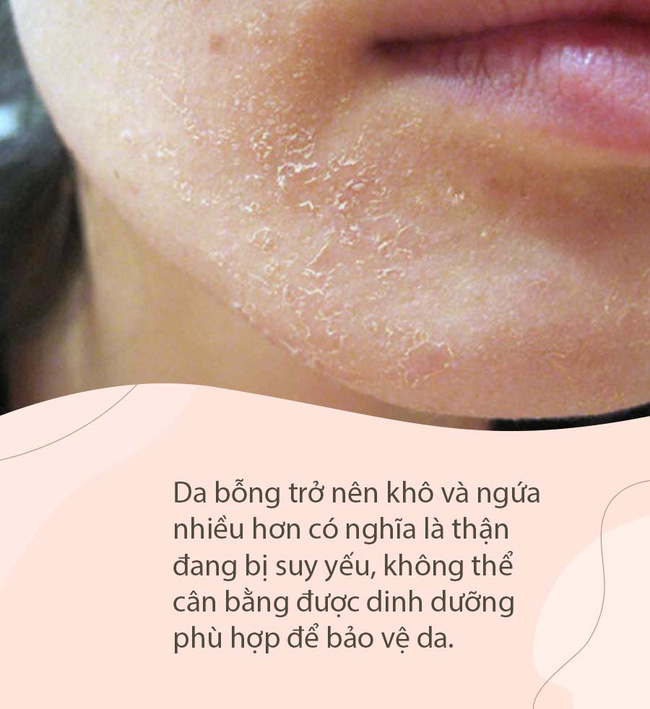 Thận là cơ quan chủ đạo giúp đào thải độc tố, sản sinh tế bào hồng cầu và duy trì lượng khoáng chất cho cơ thể. Nếu như bạn thấy da dẻ bỗng trở nên khô và ngứa nhiều hơn, hãy coi chừng thận đang bị suy yếu nên không thể cân bằng được khoáng chất, dinh dưỡng phù hợp để bảo vệ da và xương.