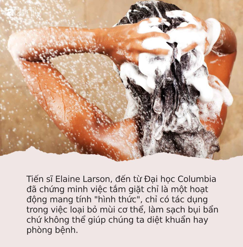 Theo Dailytime, làn da của bạn sở hữu rất nhiều vi khuẩn có lợi, giúp bạn khỏe mạnh, bảo vệ cơ thể bạn khỏi các độc tố của các sản phẩm hóa học. Thế nhưng, việc tắm gội sẽ khiến lượng vi khuẩn tốt này bị chết đi, như vậy là vô cùng lãng phí.